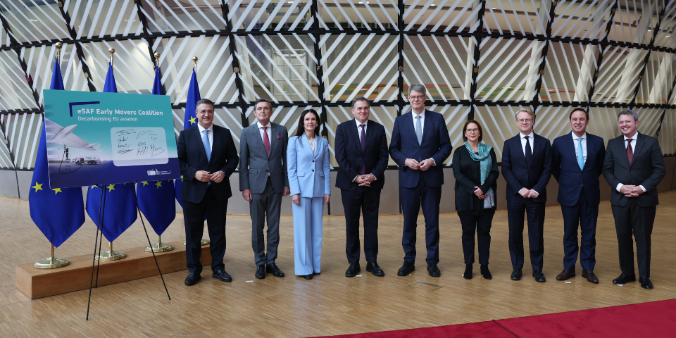 Today, Minister @Yuriko_Backes signed a joint declaration with her German, Dutch, French, Austrian, Portuguese, Spanish and Finnish counterparts, in the presence of Commissioner Apostolos Tzitzikostas, to establish the “e-SAF Early Movers Coalition” ✍️🇪🇺