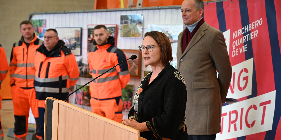 La ministre de la Mobilité et des Travaux publics, Yuriko Backes, a inauguré ce vendredi la nouvelle installation photovoltaïque du bâtiment de la brigade du Fonds Kirchberg, en présence de Sylvie Siebenborn et de Marc Widong.