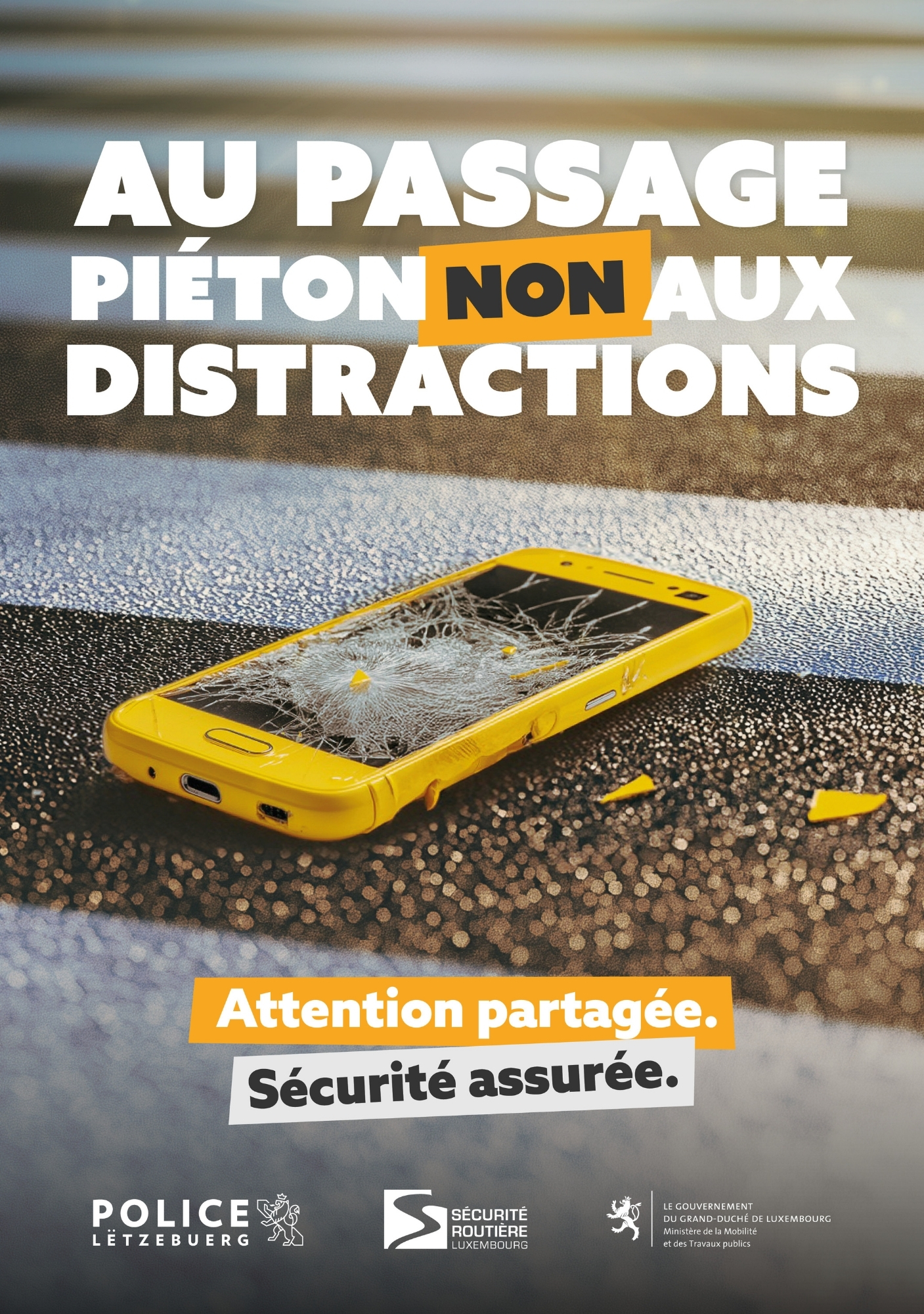 La campagne rappelle également que deux tiers des accidents entre véhicules et piéton*ne*s surviennent dans l'obscurité. Un autre aspect de sensibilisation concerne l'importance de porter des vêtements réfléchissants et pour le moins, des brassards réfléchissants, acte de sensibilisation qui renvoie à la campagne lancée en 2024 "Soyez visibles - Sidd siichtbar".