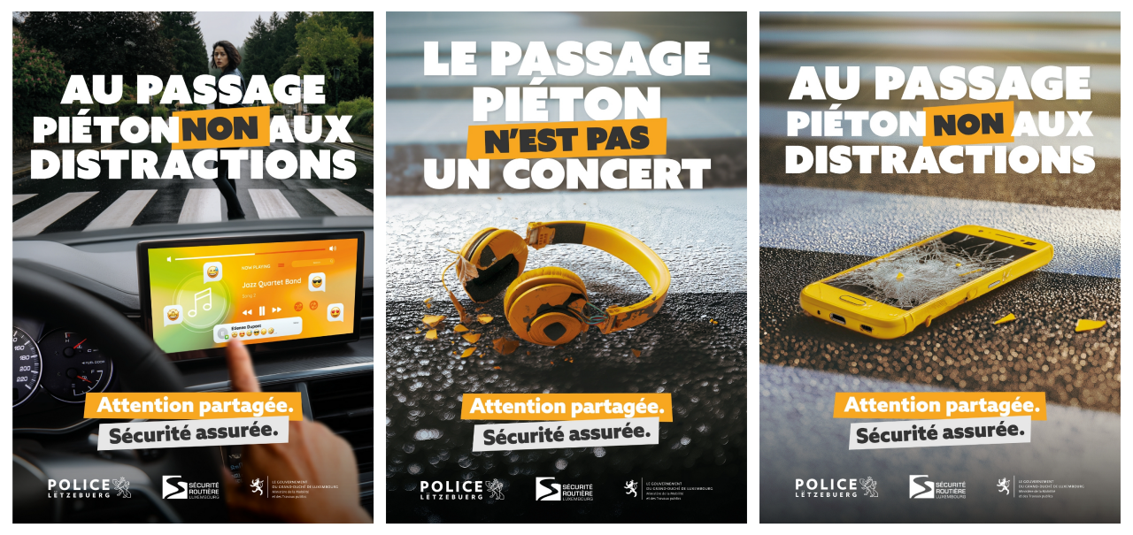 Déclinée en trois langues (anglais, français et luxembourgeois), la campagne met en lumière trois comportements qui sont devenus au quotidien ordinaires, voire banals, mais sont en réalité sources de danger et qui augmentent considérablement le risque d'un accident: